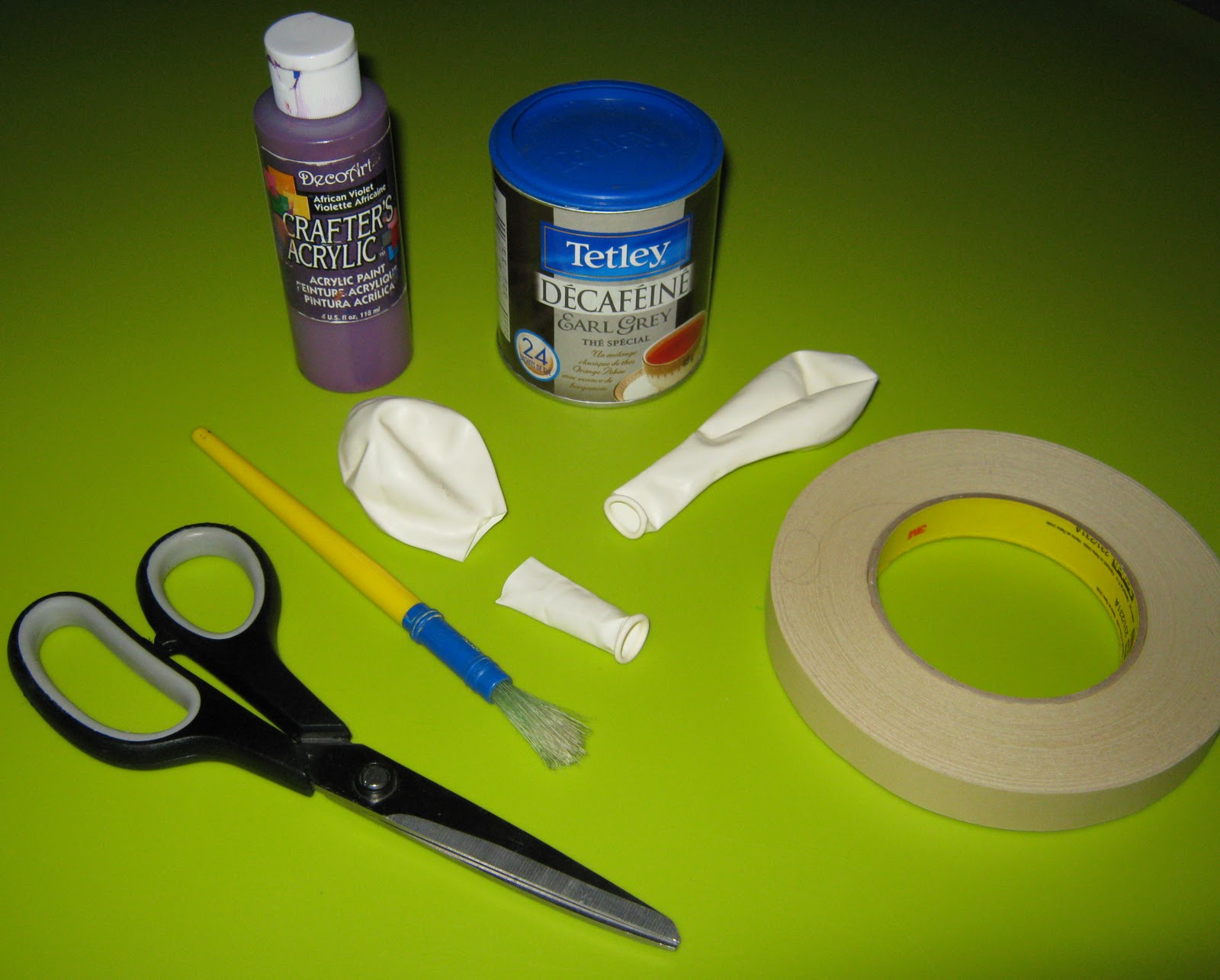Use any small container - a balloon - masking tape - scissors - paint and brush optional!